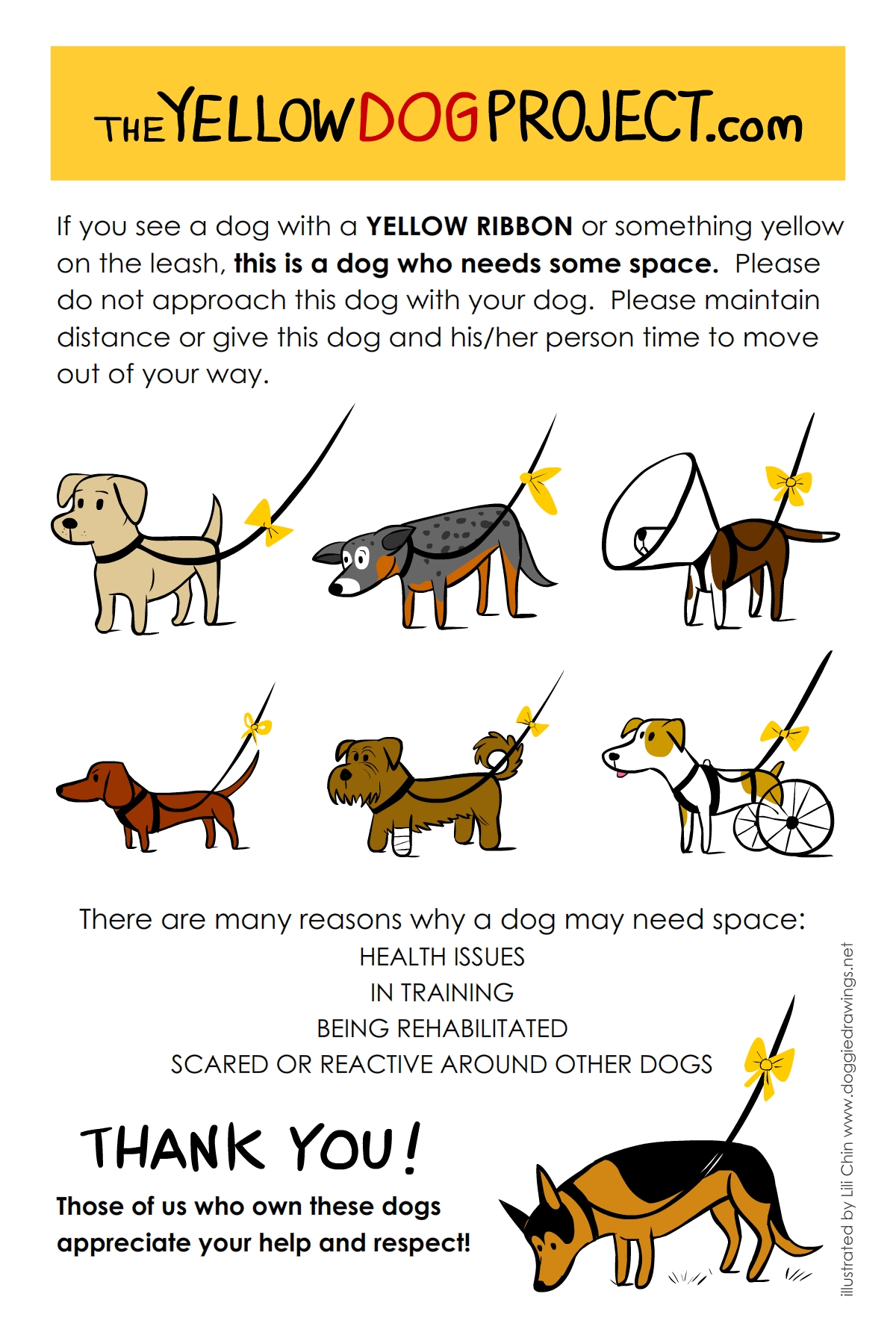 In Canada è stato attivato a partire da un’idea di una dog trainer un progetto denominato “Yellow Dog Project”. Al centro di questa semplice quanto curiosa iniziativa sono i cosiddetti “Dinos”: Dogs In Need Of Space, cani, cioè, che per svariati motivi: età, malattie, particolari addestramenti in corso non debbano essere fatti oggetto di approcci e attenzioni da parte degli estranei o di altri cani. I “Dinos” vengono facilmente riconosciuti attraverso la presenza di un nastro giallo legato al guinzaglio.